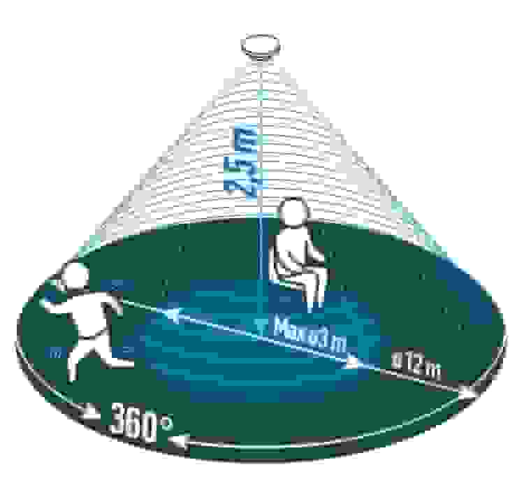 Designed for discreet installation, this compact sensor measures just 115 mm in diameter and 24.3 mm in height. Its slim profile allows seamless integration into ceilings and modern interiors while maintaining powerful and reliable motion detection.